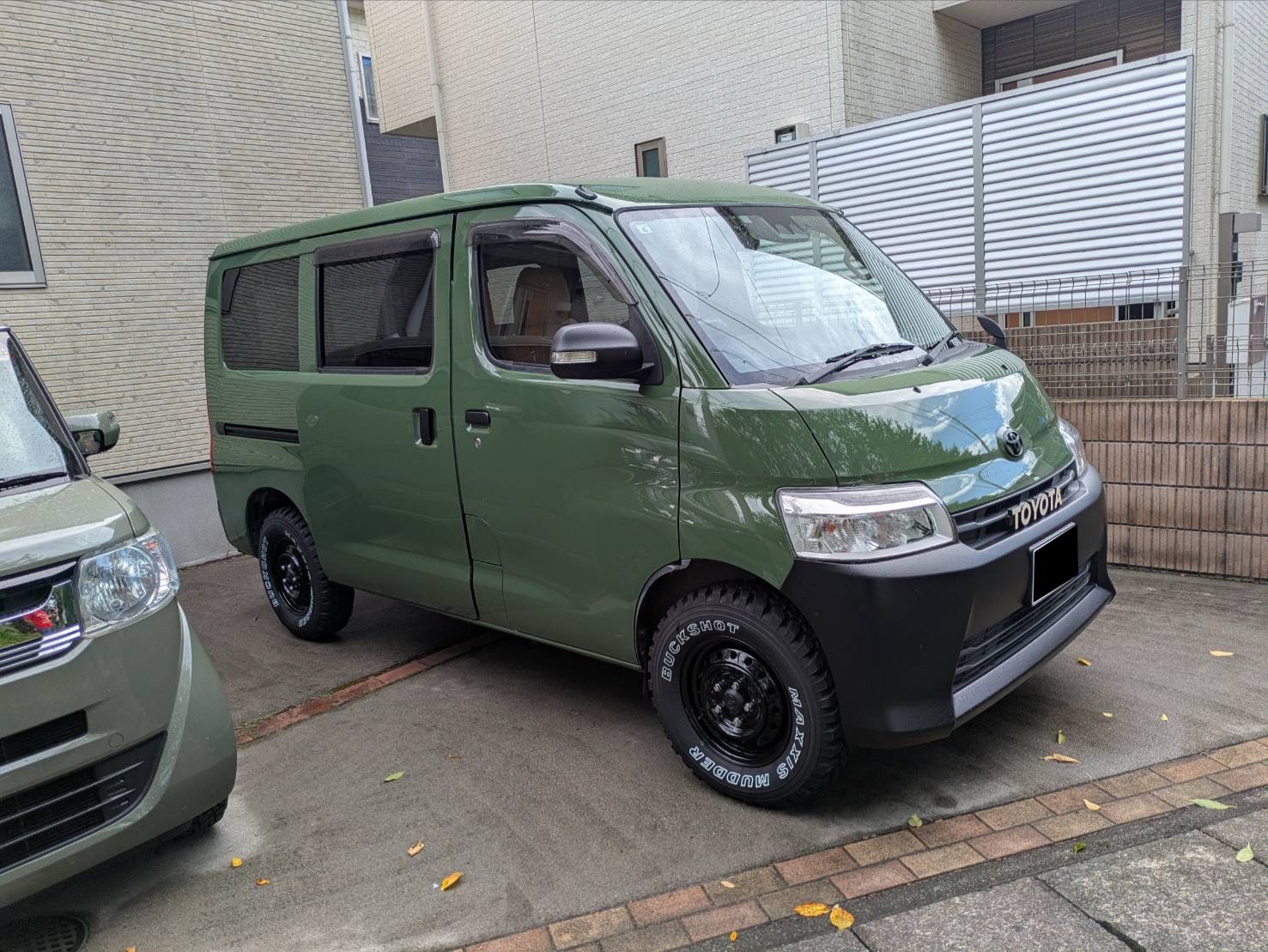 | 外装カスタム | 【ボディ】 サージグリーン 【天井ルーフ】 サージグリーン 【Aピラー】 サージグリーン 【ドア取手】 マットブラック 【ドアミラー】 マットブラック 【ガーニッシュ】 マットブラック 【エンブレム前】 マットブラック 【鉄チンホイール14インチ】 ブラック 【後バンパー】 マットブラック 【リアTOYOTAデカール】 マットブラック 【フロントバンパー】 マットブラック 【TOYOTAエンブレム】 あり フロント 【タイヤ】 バックショット 【エンジンルームカバー】 あり 【インテリア内張セット】 キャメル 【蚊帳】 あり 【リアアンダーミラーカバー】 あり |