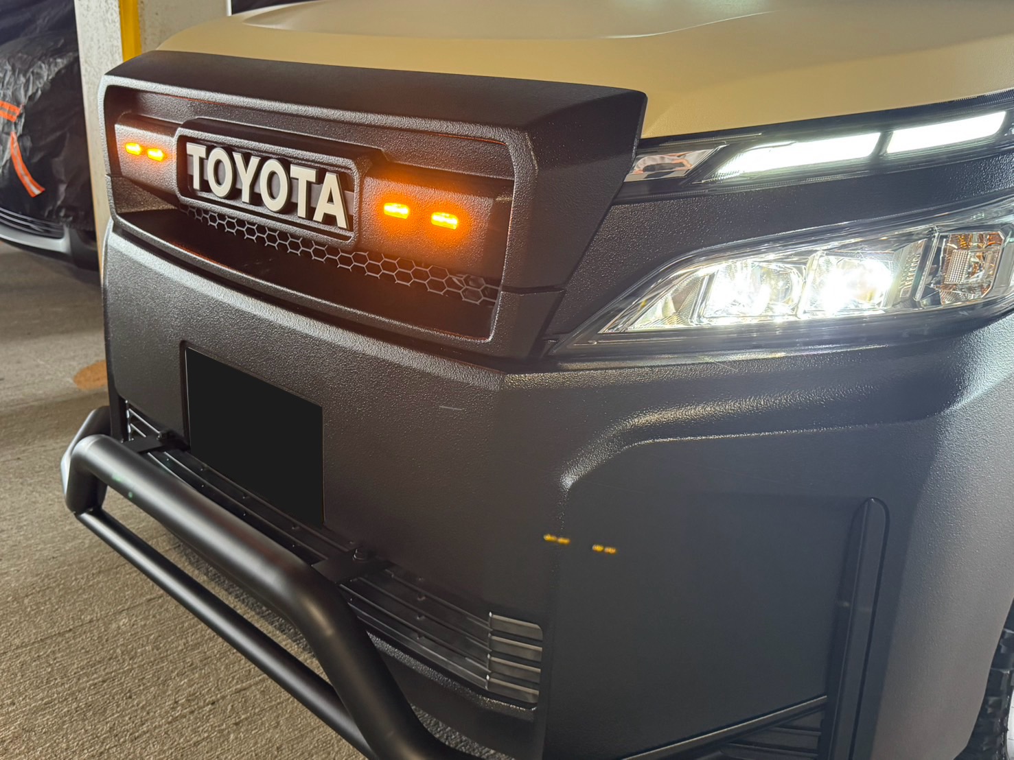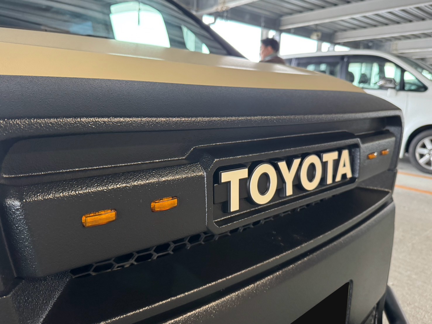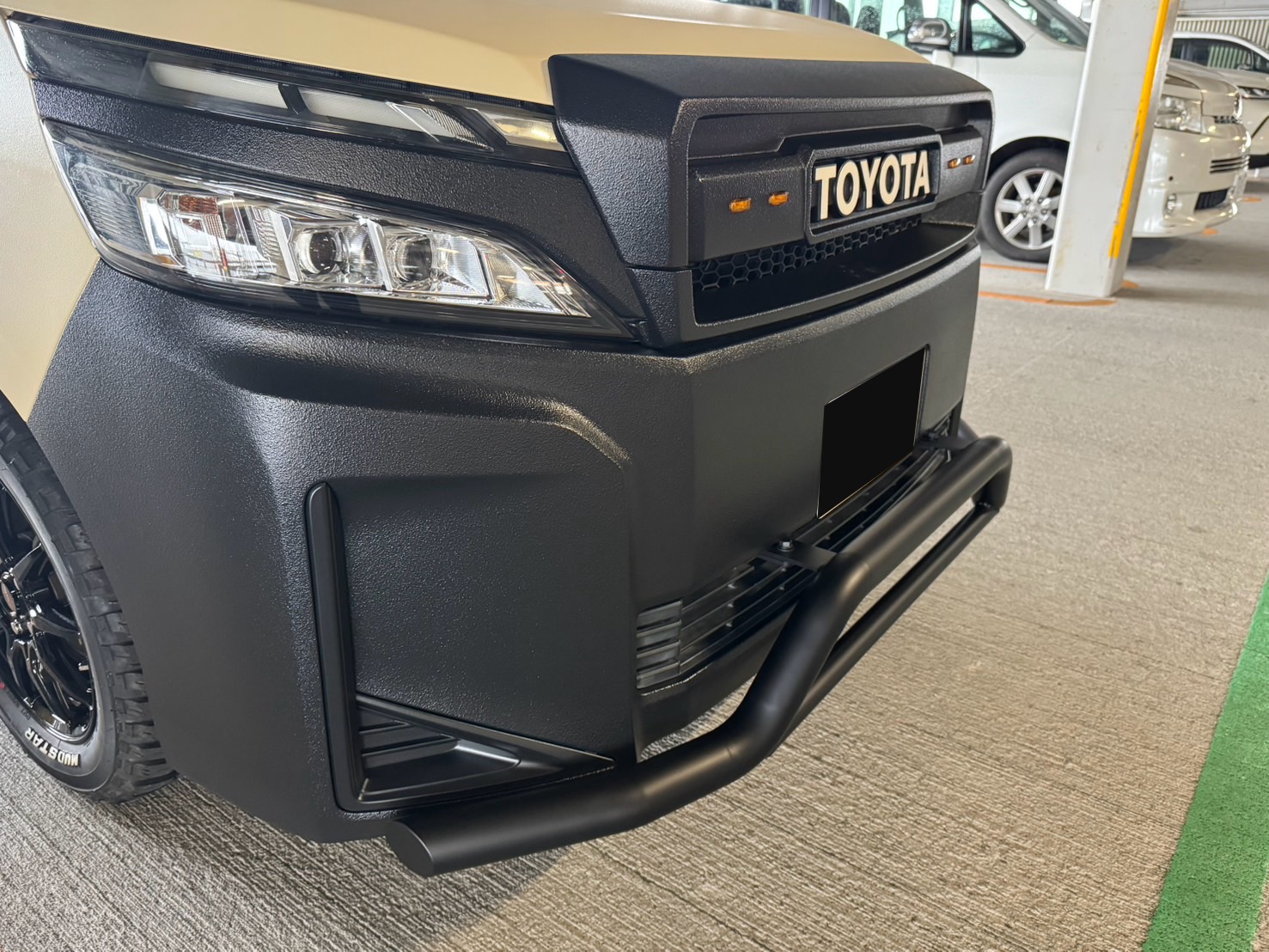 | 外装カスタム | 【ボディ】 シフォンアイボリーラプター細かめ 【Aピラー】 シフォンアイボリーラプター細かめ 【ドア取手】 ブラックラプター粗目 【ドアミラー】 ブラックラプター粗目 【ガーニッシュ】 ブラックラプター粗目 【エンブレム後】 ブラックラプター粗目 【ダイナグリル】 ブラックラプター粗目 【グリルガード】 マットブラック 【ヘッドライトガーニッシュ】 ブラックラプター粗目 【フロントバンパー】 ブラックラプター粗目 【リアバンパー】 ブラックラプター粗目 【ホイール】 ロクサーニ 【タイヤ】 マッドスター16MT 【ルーフキャリア】 セット |