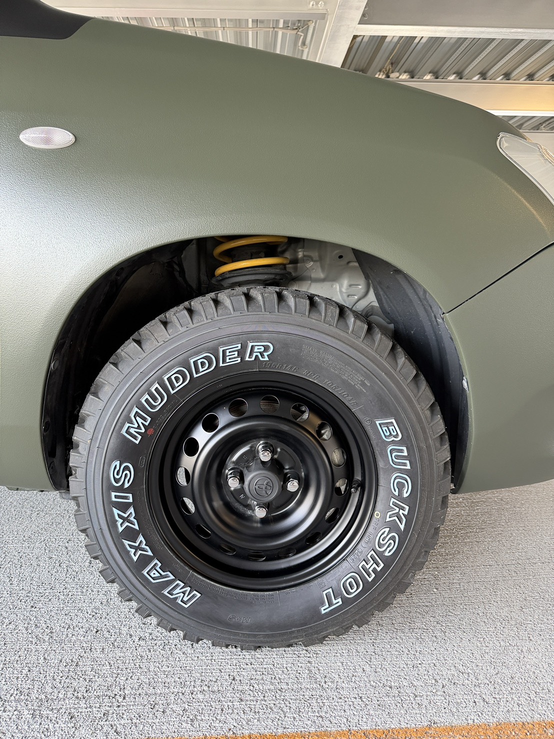 | 外装カスタム | 【ボディ】 ジャングルグリーンラプター中目 【天井ルーフ】 ジャングルグリーンラプター中目 【Aピラー】 ラプターブラック中目 【ボディサッシュ】 サッシュテープ 【ドア取手】 ラプターブラック粗目 【ドアミラー】 ラプターブラック粗目 【ガーニッシュ】 ラプターブラック粗目 【エンブレム後】 ラプターブラック粗目 【鉄チンホイール14インチ】 マットブラック 【後バンパー】 ラプターブラック粗目 【新型カスタムヘッドライト】 ウィンカー部オレンジ 【グリル塗装】 ラプターブラック粗目 【フロントバンパーボトム】 ジャングルグリーンラプター中目 【リアバンパーボトム】 ジャングルグリーンラプター中目 【グリルガード】 マットブラック 【オーバーフェンダー】 マットブラック 【リフトアップ】 イエロー 【フォグランプ】 ハロゲン 【グリルガード】 前のみ 【タイヤ】 バックショット 【シート角度調整キット】 あり 【インテリア内張3点セット】 キャメル |