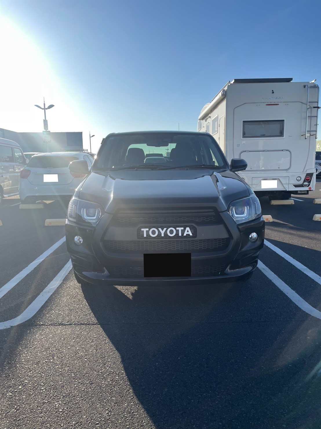 | 外装カスタム | 【ボディ】 新車 ブラック 【オーバーフェンダー】 マットブラック 【ヘッドライトカスタム】 ブラック 【グリル塗装】 マットブラック 【フロントバンパーボトム】 ブラックマイカ |