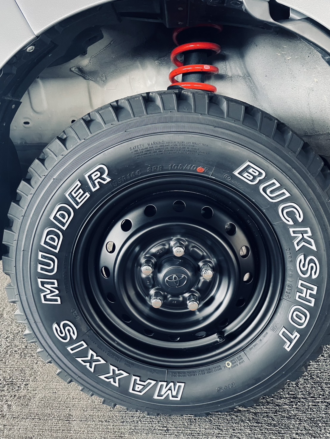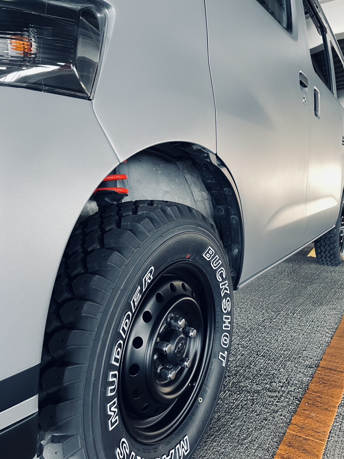| 外装カスタム | 【ボディ】 ナルドグレー暗めラプター細かめ 【Aピラー】 ナルドグレー暗めラプター細かめ 【ドア取手】 ブラックラプター細かめ 【ドアミラー】 ブラックラプター細かめ 【ガーニッシュ】 ブラックラプター細かめ 【エンブレム後】 ブラックラプター細かめ 【鉄チンホイール14インチ】 マットブラック 【後バンパー】 ブラックラプター細かめ 【グリル塗装】 マットブラック 【フロントバンパー】 ナルドグレー暗めラプター細かめ 【スキットプレート】 ブラックラプター細かめ 【タイヤ】 バックショット 【リフトアップ】 エグゼレッド |